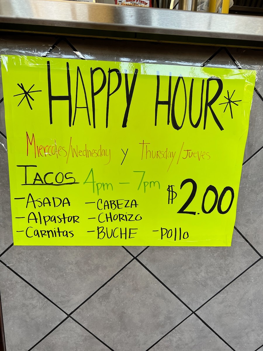 Taco Tuesday: Indulge in mouthwatering tacos for just $150, featuring carnitas, chicken, and pastor.